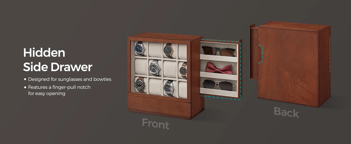 Dimensions: 11.6" (L) x 1.9" (W) x 12.8" (H) – compact yet spacious enough to store multiple watches.