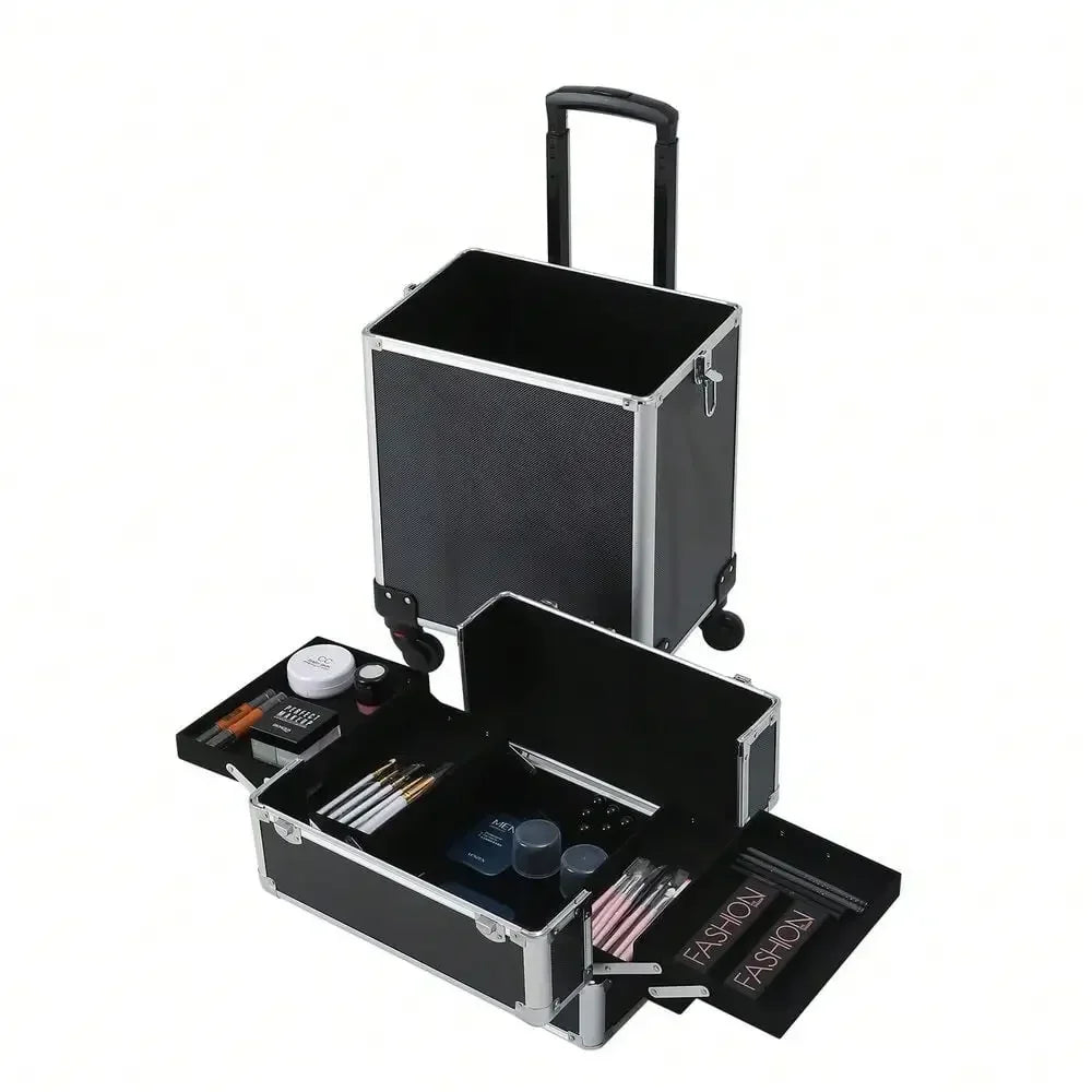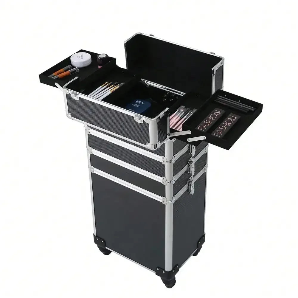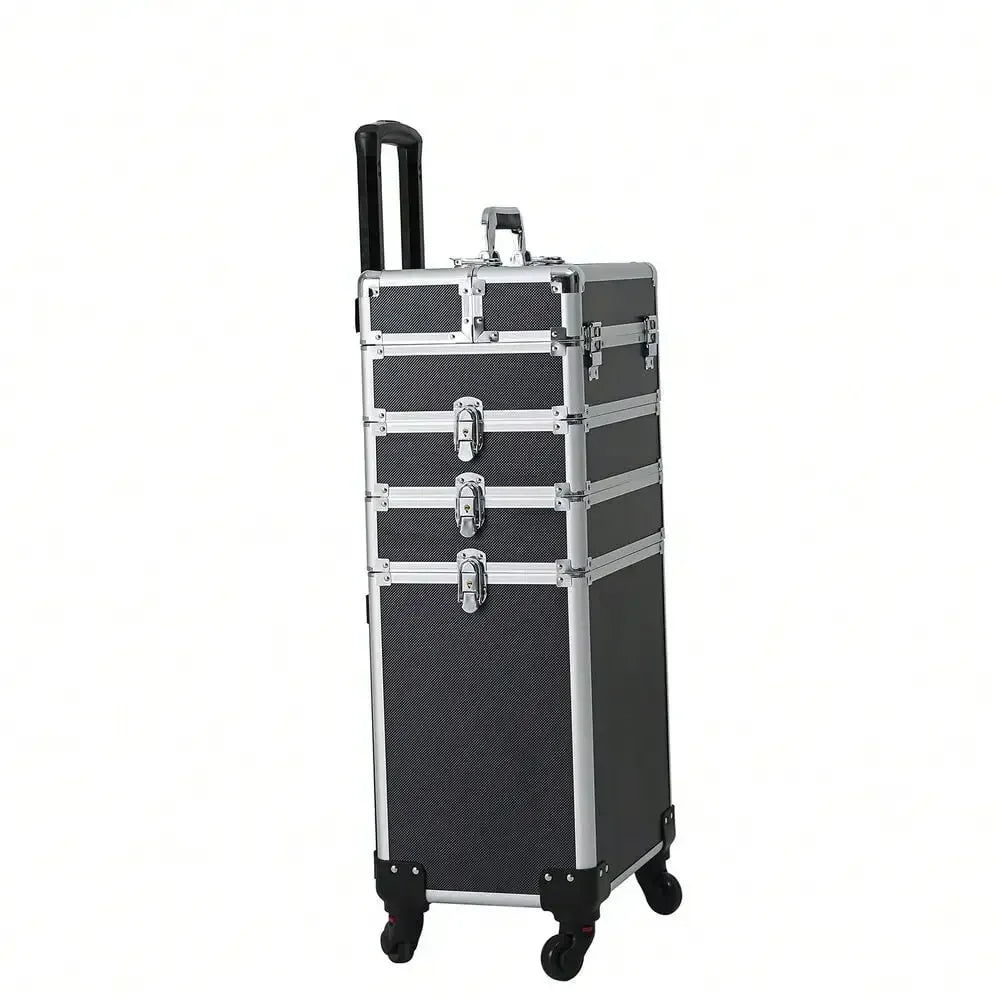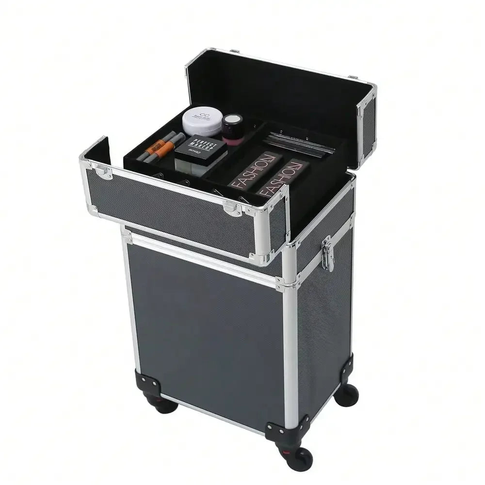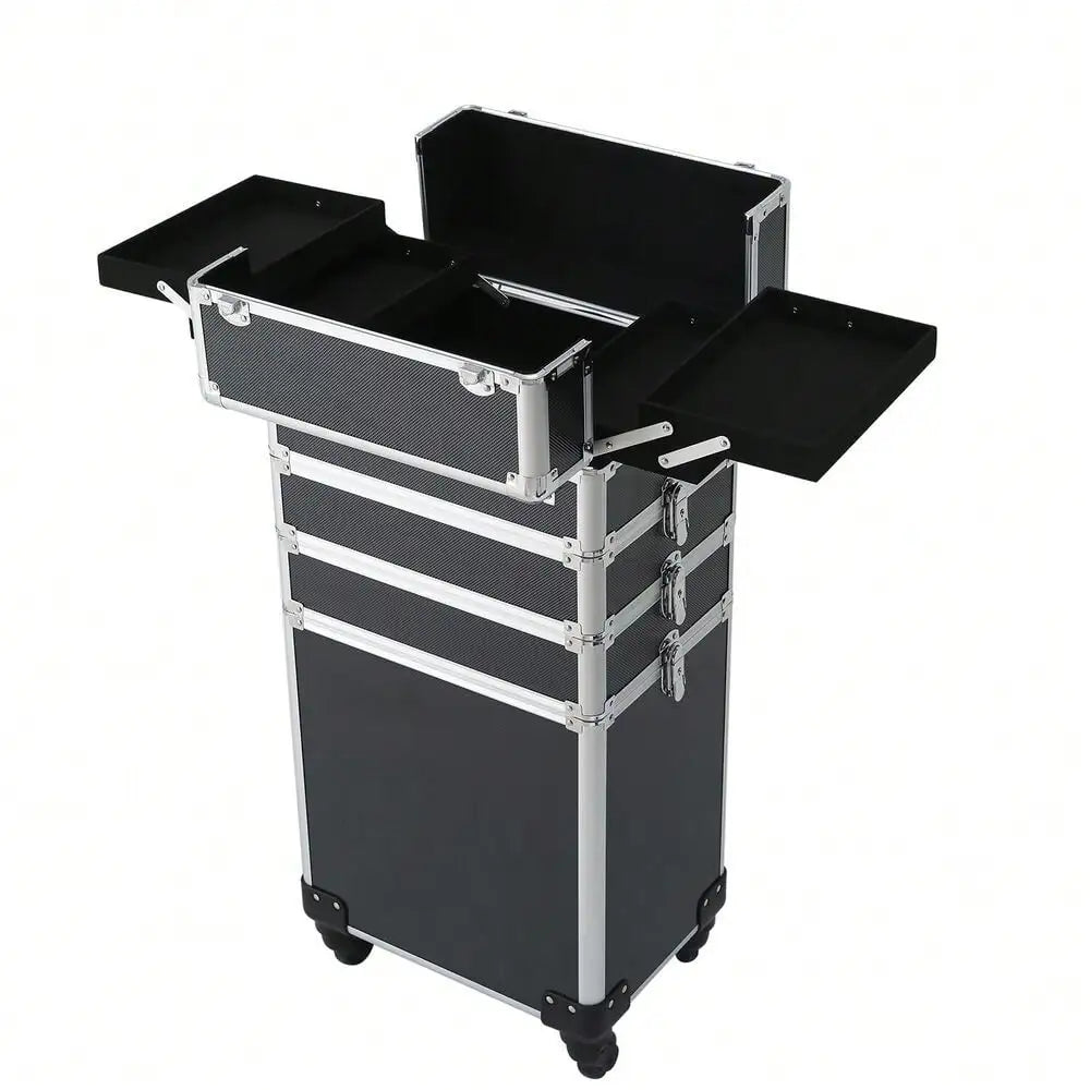 4-in-1 Professional Aluminum Rolling Makeup Case – Salon-Grade Cosmetic Organizer Trolley (US Stock)