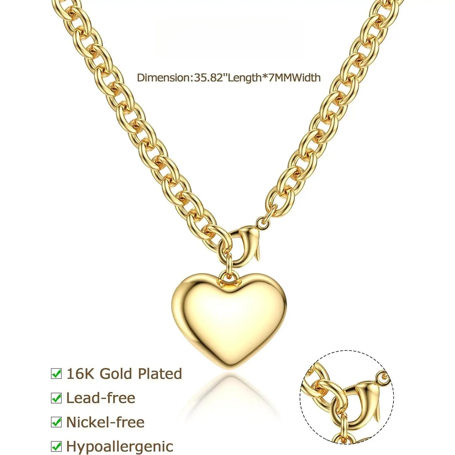 Chunky Heart Necklace for Women – Bold Puffy Pendant Statement Jewelry