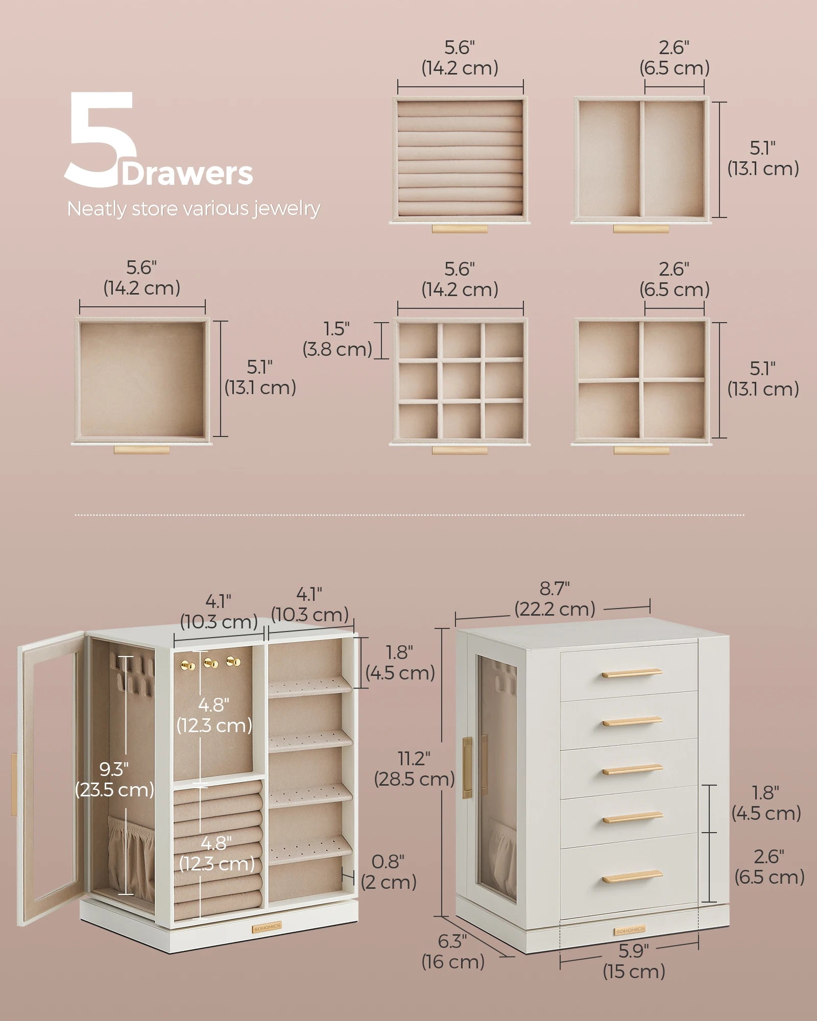 - Generous Dimensions: 24 cm (L) x 17 cm (W) x 28 cm (H), offering spacious compartments to organize your jewelry effortlessly