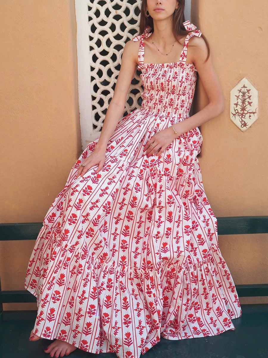 Floral A-Line Sundress with Tie-Up Straps – Effortless Summer Style