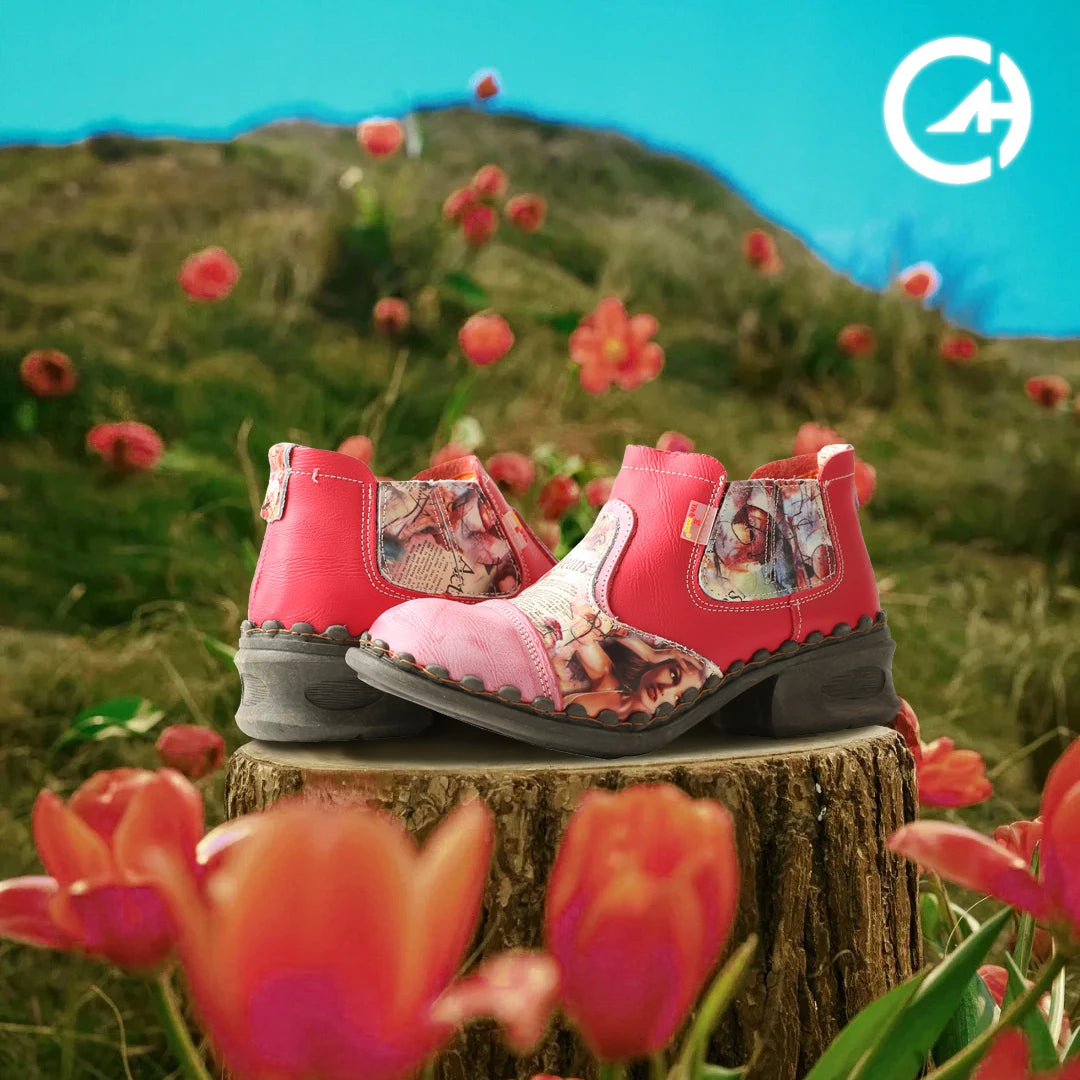 Step into style and luxury with these modern ankle boots, crafted from premium genuine cow leather for a sleek and sophisticated look. The genuine leather shaft and upper offer durability and comfort, while the pig split insole adds softness with every step. Featuring unique splicing fashion elements and a bold print pattern, these boots make a statement with ease. The hoof heels provide a modern twist, offering a low heel height (1-3cm) and a subtle platform for added comfort without compromising on style. Designed with a round toe and a secure zip closure, these boots are easy to wear and fit true to size. Perfect for any occasion, they combine elegance and practicality for a look that's as chic as it is comfortable.